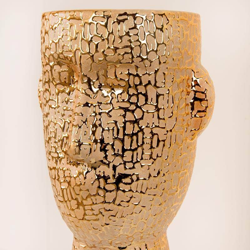 Gold Textured Ceramic Face Vase - 24.5cm